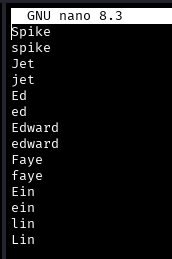 Por otro lado, creo un fichero txt con nano para incluir todos los usuarios potenciales que encuentro en la web por el puerto 80, incluyendo el usuario que encontramos en el fichero task.txt: