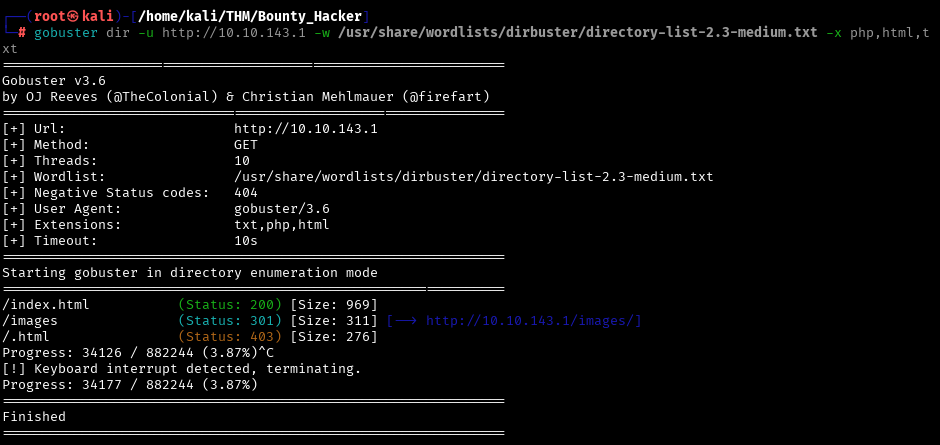 Por si acaso encontrara más usuarios ocultos, hago fuzzing web sobre la IP pero no detecto nada interesante más allá de la parte de /images/ que solo aloja la img principal y nada más.