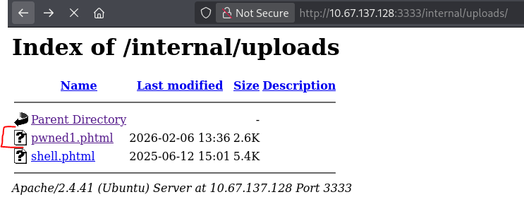 Comenzamos con una fase de enumeración y escaneo de puertos usando Nmap, donde identificamos varios servicios abiertos, destacando un servicio web expuesto en el puerto 3333, poco habitual en este tipo de laboratorios. Tras confirmar versiones y servicios, accedimos a la aplicación web y, aunque a simple vista no encontramos información sensible, profundizamos con fuzzing web para descubrir un directorio oculto /internal.Dentro de este directorio encontramos una funcionalidad de subida de archivos, lo que nos marcó el vector de ataque. Tras una segunda fase de fuzzing localizamos el directorio /uploads, donde se almacenaban los ficheros subidos. A partir de ahí, generamos un payload malicioso con msfvenom para obtener una reverse shell. Como el servidor bloqueaba extensiones .php, realizamos un bypass cambiando la extensión a .phtml, logrando subir el archivo y ejecutarlo desde el navegador. Esto nos permitió obtener acceso inicial al sistema como el usuario www-data, que posteriormente estabilizamos creando una segunda reverse shell en Bash para trabajar de forma cómoda.Una vez dentro del sistema, pasamos a la escalada de privilegios. Enumeramos binarios con permisos SUID y analizamos cuáles podían ser explotables, apoyándonos en GTFOBins. Detectamos que el binario systemctl podía ser abusado mediante SUID, por lo que creamos un servicio malicioso que modificaba los permisos de /bin/bash para convertirla en SUID. Tras ejecutar el script desde /tmp, lanzamos una bash privilegiada y conseguimos acceso como root. |