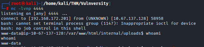 Hecho todo esto, vemos que somos el usuario www-data , por lo que vamos a escalar privilegios a root.